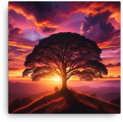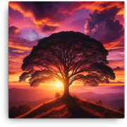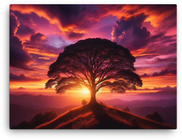 Sunset Embrace on the Hilltop Tree — where a dusky glow wraps a lone hilltop tree in bold, dreamlike hues, inviting your space to breathe with artful whimsy.