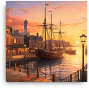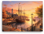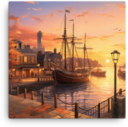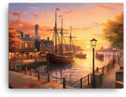Sunset Serenade at the Harbor bursts onto your wall with a warm, neon-touched glow—where shoreline blues meet sunset golds in a playful Visual Funky moment.
