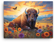 Sunset Serenity Bison and Wildflowers Canvas Wall Art turns the quiet drama of a western sunset into your next statement piece—bold bison silhouette, meadow blossoms, and warm horizon hues dancing across the canvas.