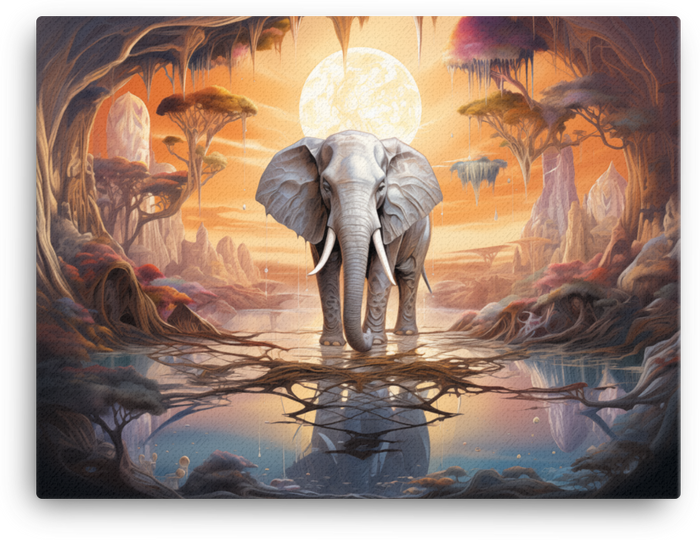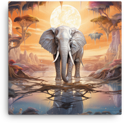 Step into a Surreal Lunar Landscape, where an elephant strolls across a moonlit horizon—this Surreal Lunar Landscape Elephant canvas wall art delivers dreamlike whimsy with bold, Visual Funky energy for any room. This canvas print is a vivid piece for living rooms, bedrooms, or offices, and is perfect for home decor enthusiasts who crave a distinctive, surreal wall art statement.