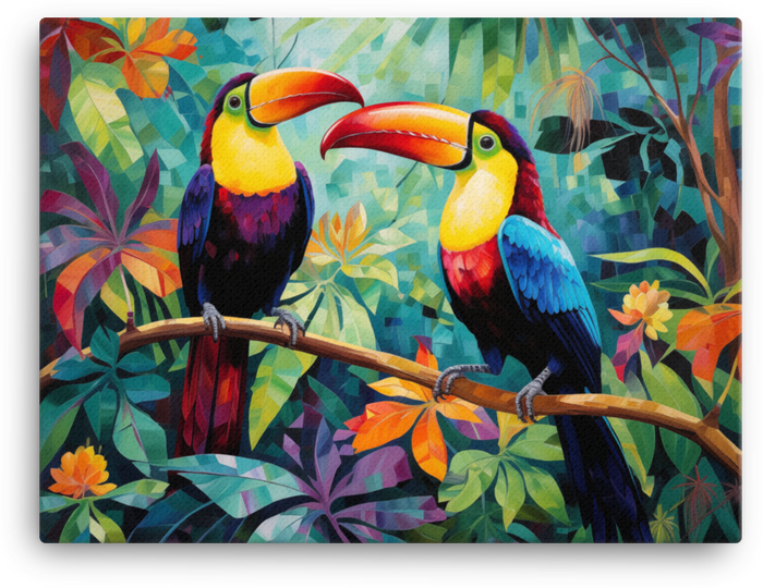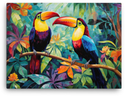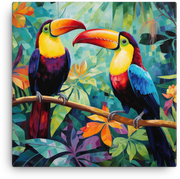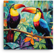 Let your walls come alive with tropical whimsy as Toucan Duo flits across a Tropical Eden in this canvas wall art—a bold centerpiece for any room.