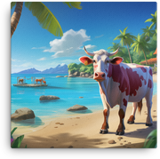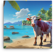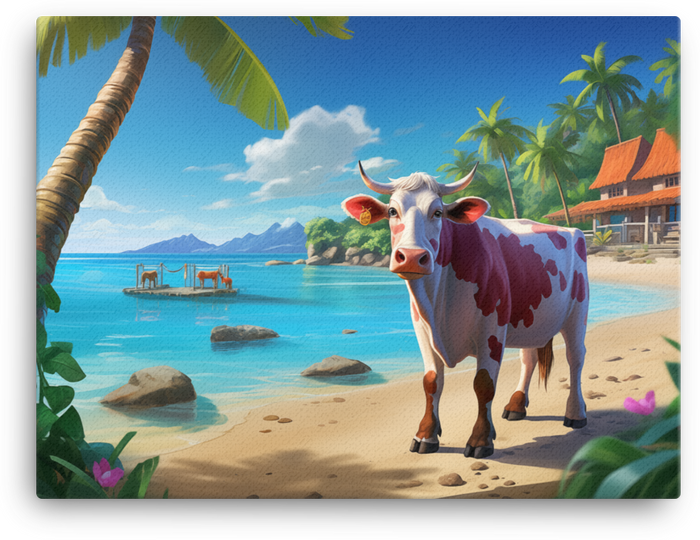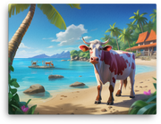 Step into a Tropical Paradise Cow Canvas Wall Art with a playful twist—the piece liven up any wall with a breezy, cow-friendly oasis in bold, sunny colors.
