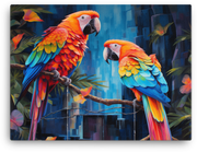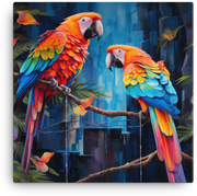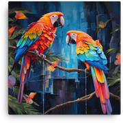 Let tropical parrots burst into your space with Tropical Parrots in Paradise, a vivid canvas wall art that channels a sun-drenched jungle and bold, fluttering color.