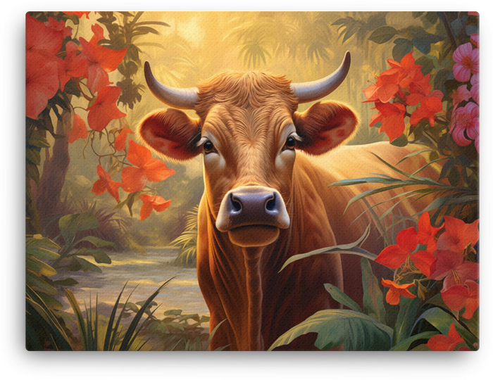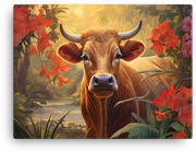 Step into a Tropical Twilight with a playful cow silhouette that turns any wall into a bright, whimsical landscape. This canvas wall art blends tropical hues with a cheeky bovine twist for bold statement decor.
