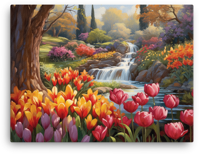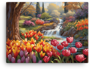 Ready to transform your space? Add Tulip Paradise by the Waterfall to your cart and bring this vibrant art into your home today.