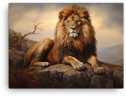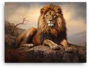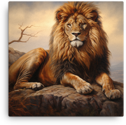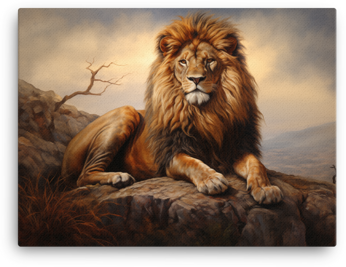 Twilight Savanna King Lion Canvas Wall Art captures dusk-lit majesty, with a regal lion silhouette set against a moody savanna sky that shifts from violet to charcoal. This painterly canvas print is a bold Visual Funky centerpiece designed to spark eye contact and conversation in any room.