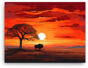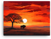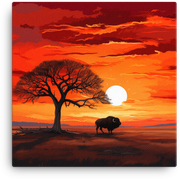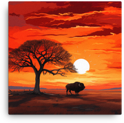 Twilight silhouettes and a vast African sky collide in a captivating canvas wall art that instantly elevates any room—the Twilight Silhouette Bison Under African Sky invites you to step into a wild, creative moment.