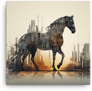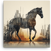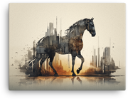 Urban Mirage Horse Canvas Wall Art invites you to ride the edge of imagination—where a dynamic horse silhouette meets an urban, dreamlike palette.
