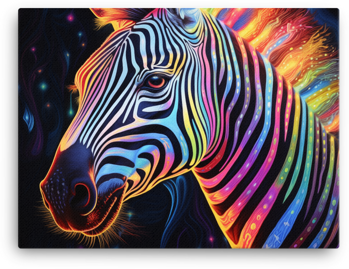 Ignite your space with the Vibrant Cosmic Zebra Portrait Canvas Wall Art—the bold centerpiece your walls have been craving. This cosmic zebra leaps from the canvas in electric color and fearless contrast, a signature Visual Funky statement piece that screams energy and creativity.