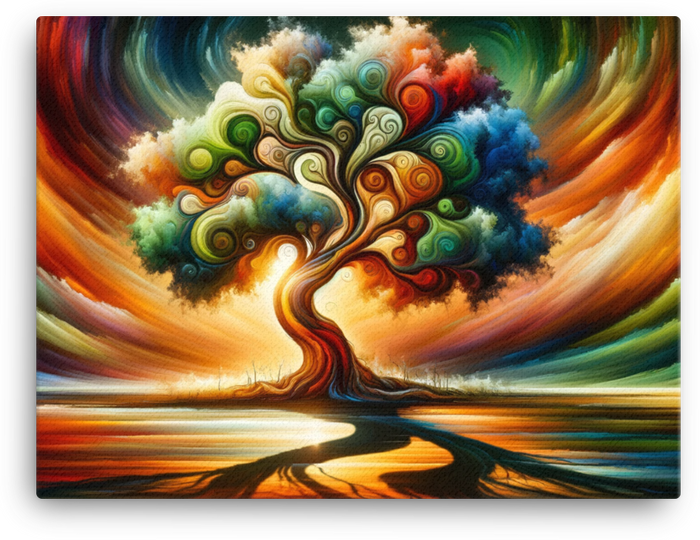Experience Visual Funky's Vibrant Whirlwind of the Four Seasons Tree—a canvas that dances through spring's bloom, summer's blaze, autumn's ember, and winter's hush in one electric, color-splashed composition.