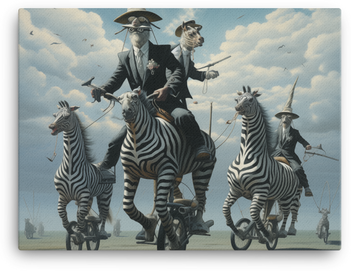 Step into a world where Victorian charm meets wild whimsy with the Victorian Zebracycle Adventure canvas wall art. This vivid print fuses refined detail with playful fantasy, making a bold Visual Funky statement for any room or office.