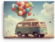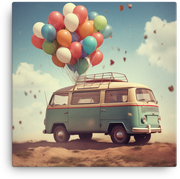 Dive into retro whimsy with the Vintage Van with Balloons canvas wall art—a playful fusion of classic road-trip charm and bold, modern color that lights up any room.