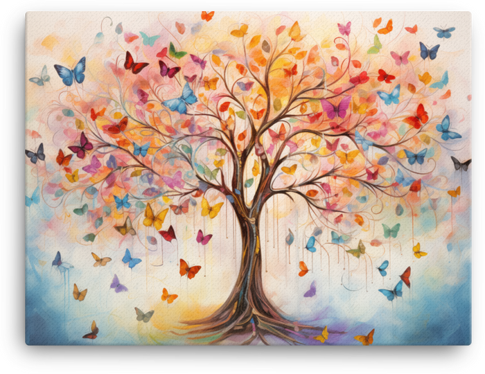 Let your walls flutter with color and whimsy with the Whimsical Butterfly Tree Canvas Wall Art—a bold, dreamlike fusion of nature and imagination that instantly livens any room or office.