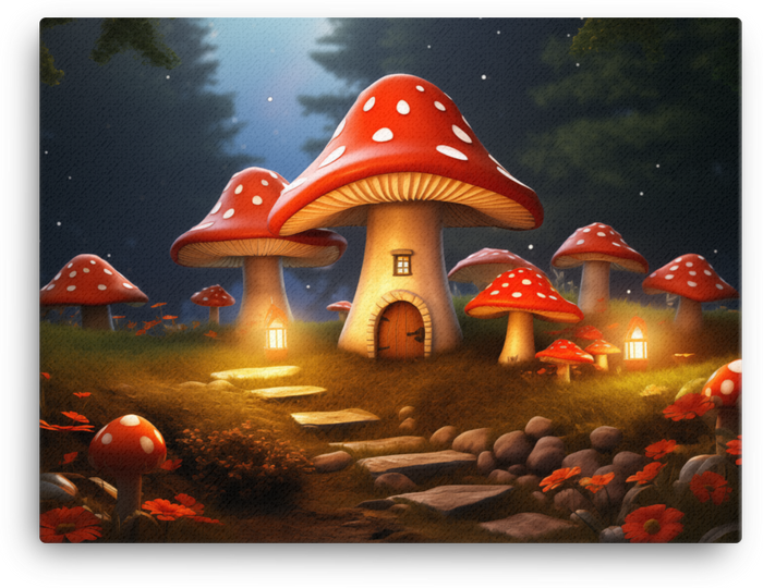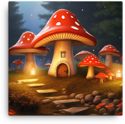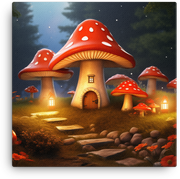 Whimsical Mushroom Cottage Canvas Wall Art