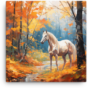 White Horse Amidst Fall Foliage Canvas Wall Art