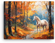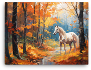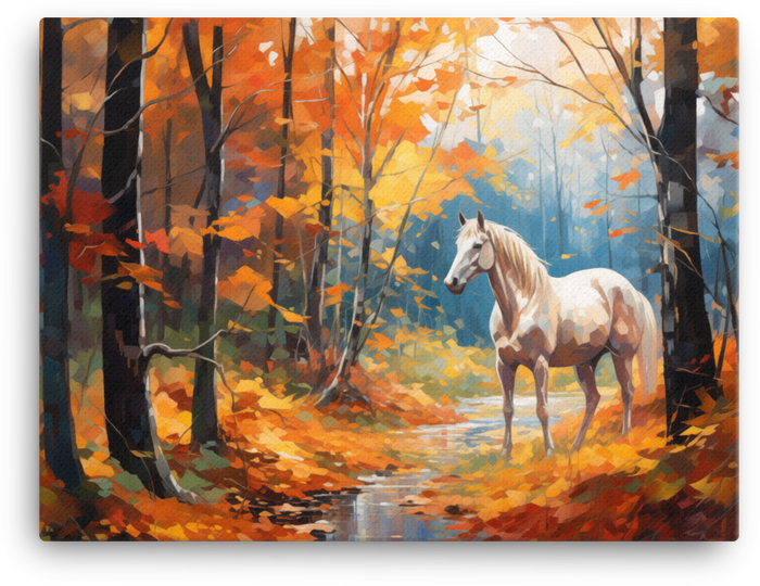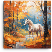 Let a noble white horse thunder through autumn's kaleidoscope—this White Horse Amidst Fall Foliage canvas wall art brings bold, nature-inspired energy to any room.