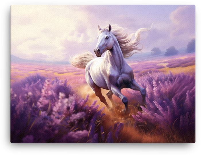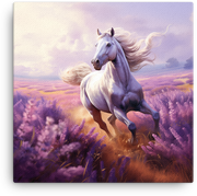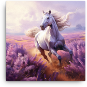 Feel the wild grace of a lavender-lit horizon with White Stallion in Lavender — a canvas wall art that blends timeless equine elegance with Visual Funky's signature funky flair.
